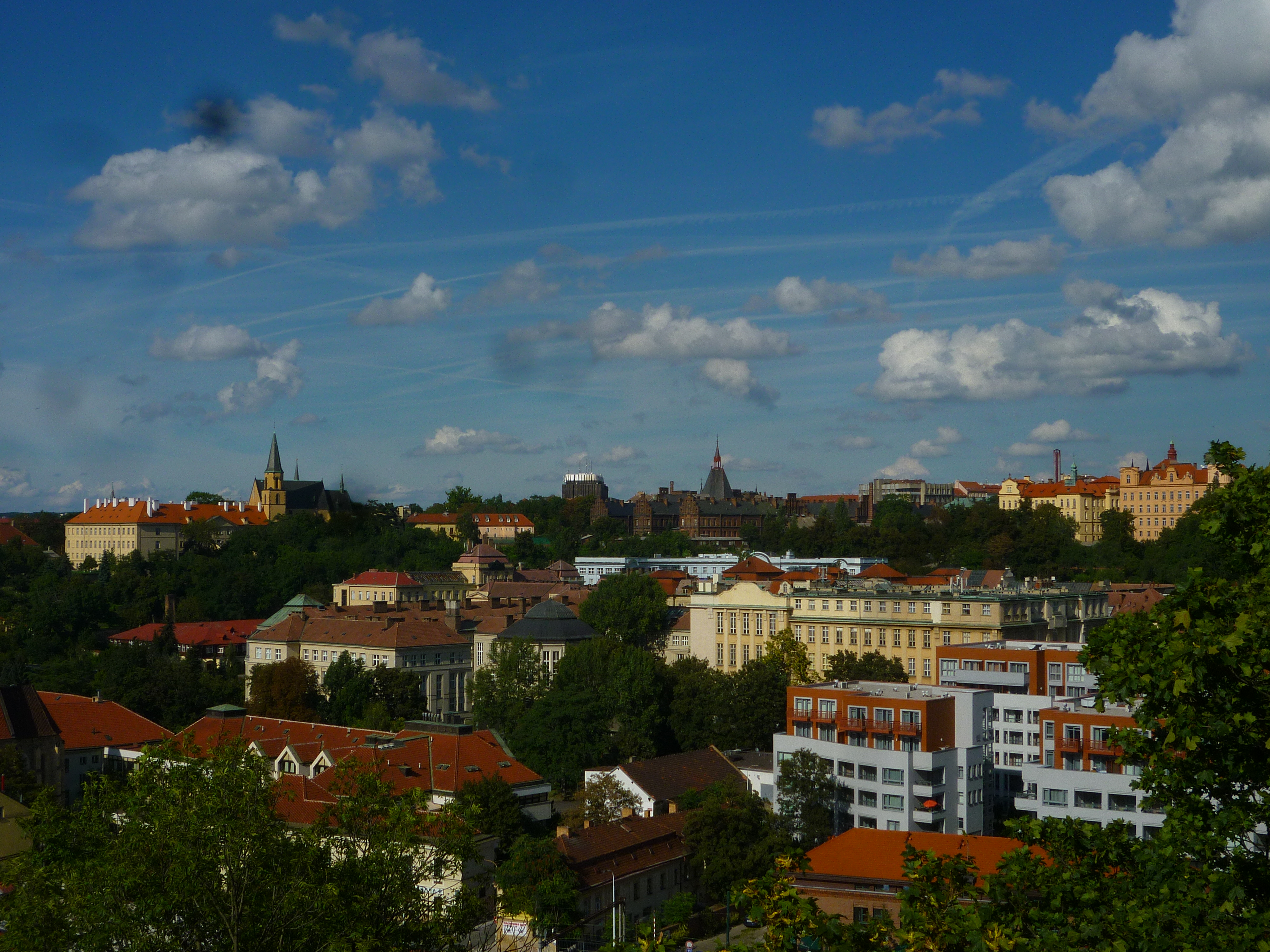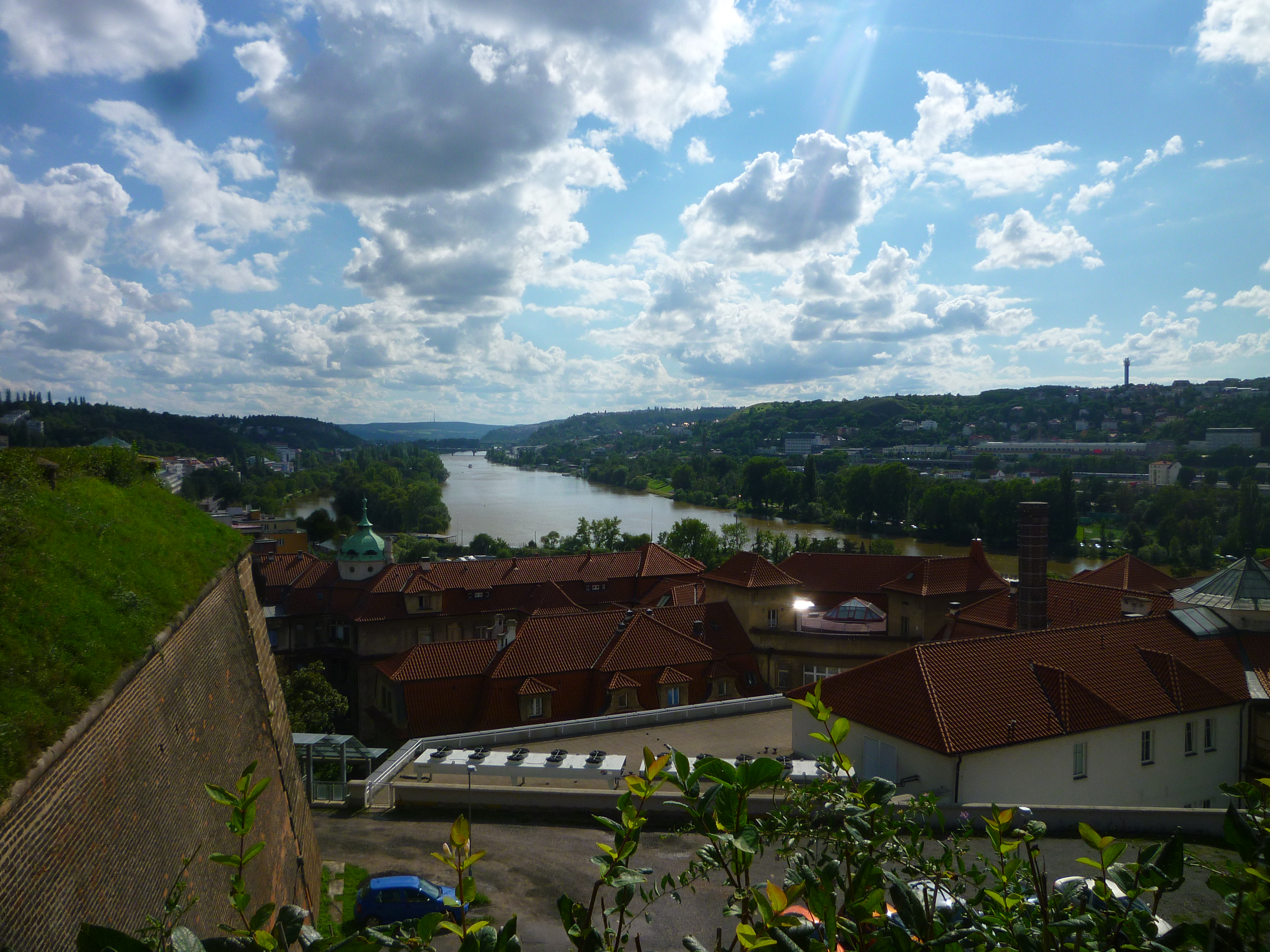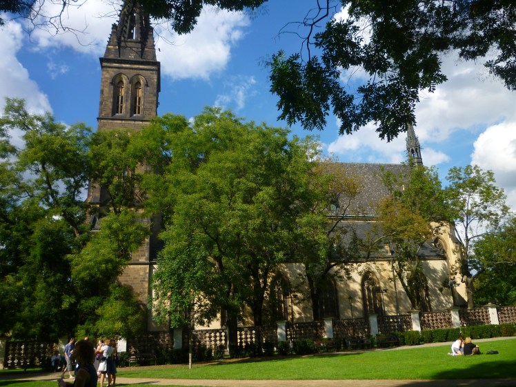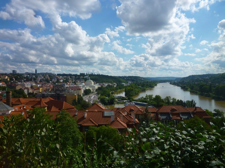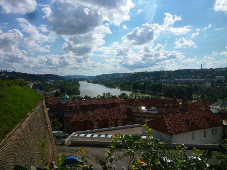 A couple of weeks ago, we took the Metro (red line) to Vysehrad and walked around the old castle walls looking at Prague from every side. The sky was a perfect blue, with photogenic clusters of clouds reflecting the sunlight and giving the photos a dreamlike quality. Behold, the city in which I now live: