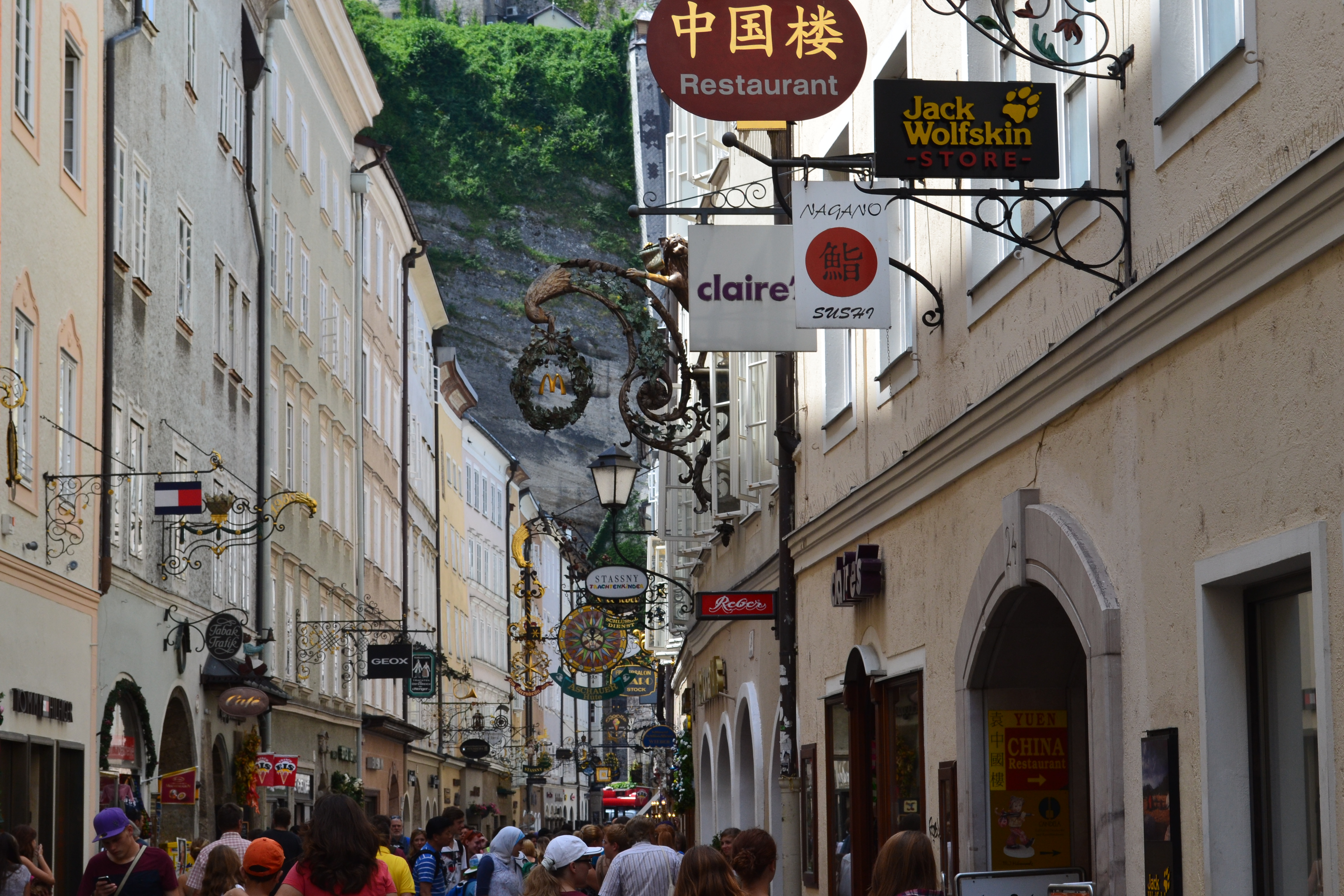 After crossing the Salzach river, we were able to walk down a long of Salzburg’s charming side streets. Another feature that the city is supposedly famous for is the street of shop signs – traditionally hung outside shops to alert passers-by of their trade, you can now find far more well-known companies mimicking the style. While I’m not the biggest fan of commercialism, tell me that isn’t the cutest McDonalds sign you’ve ever seen…