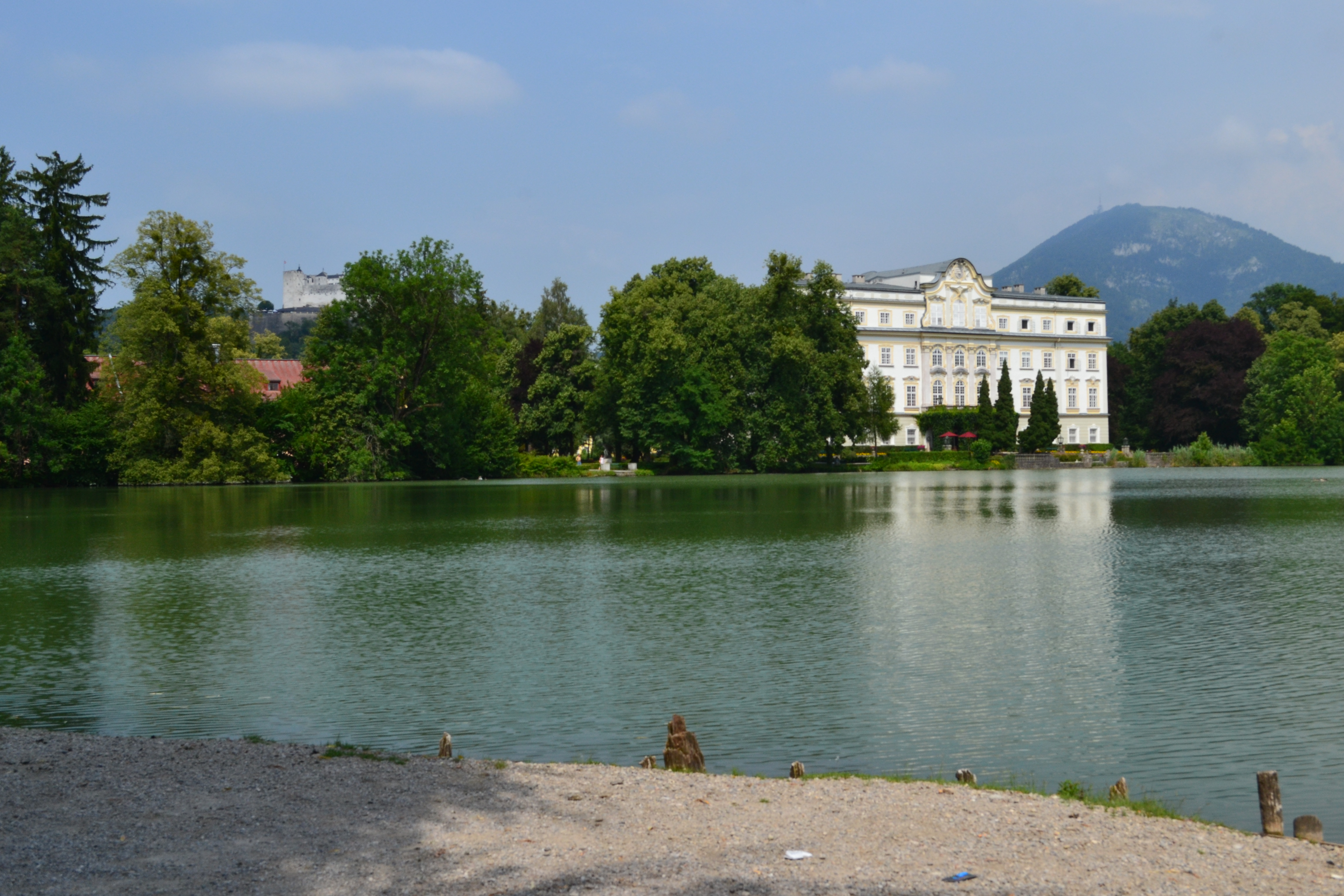 Our final stop was Schloss Leopoldskron – now a private academic institute, you might recognise it as a certain large house on a lake. While you can’t enter it, you can walk around the lake and view it from across the water. What we discovered was that two houses were used for the Von Trapp house – the other being the significantly smaller house that Maria arrives at during “I Have Confidence”, looks at through the gates and mutters “oh, help”. That building is reportedly a little further from Salzburg. The Schloss Leopoldskron is just off the main tourist map, but you can see a little of the lake in the bottom right. Without any other guidance, we walked towards it and hoped for the best. We did get a little lost, so I would recommend a bigger map or GPS, but eventually we spotted a Sound of Music tour bus and followed it!