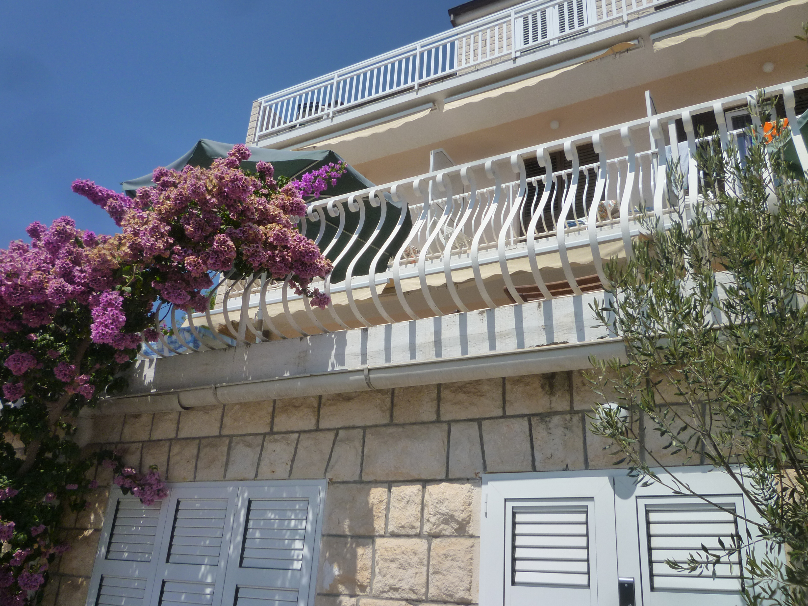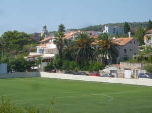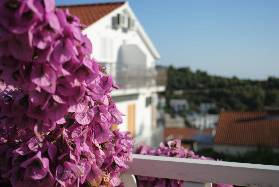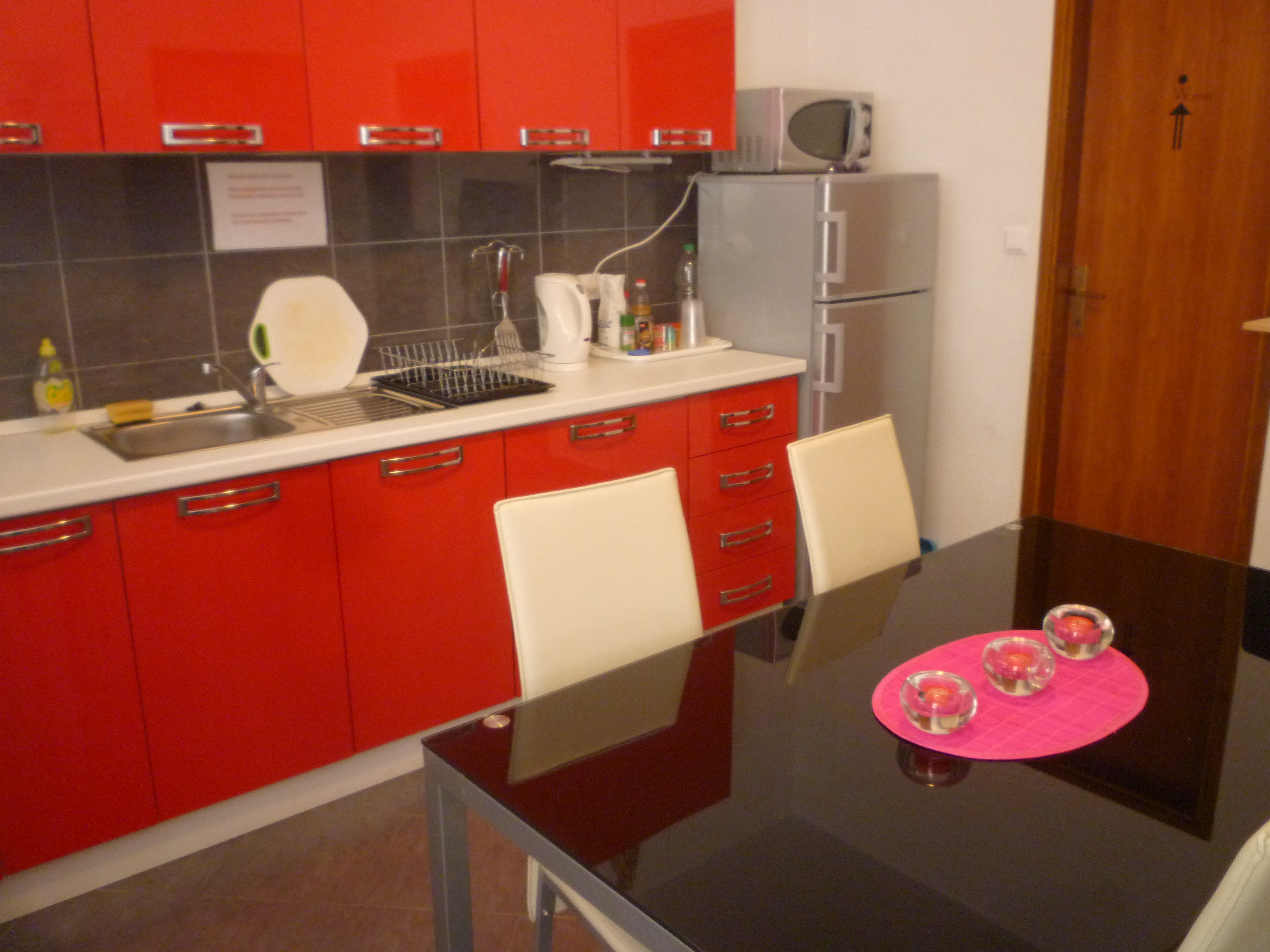We stayed at the Villa Marija, a surprisingly lovely hostel. The owner picked us up and drove us up the hill (it wasn’t that far, really) and showed us where the supermarket and beach were. The villa itself was beautiful, a terrace for sunbathing covered in pink flowers and beautiful rooms. The guy showed us how to open the door – it was a very high-tech mechanism, where you had to press your hand for a certain amount of time, type in a code, do some other things, before the door opened. The kitchen looked like something from a catalogue, and the bathrooms and bedroom weren’t much different.