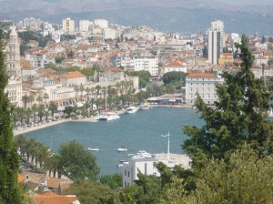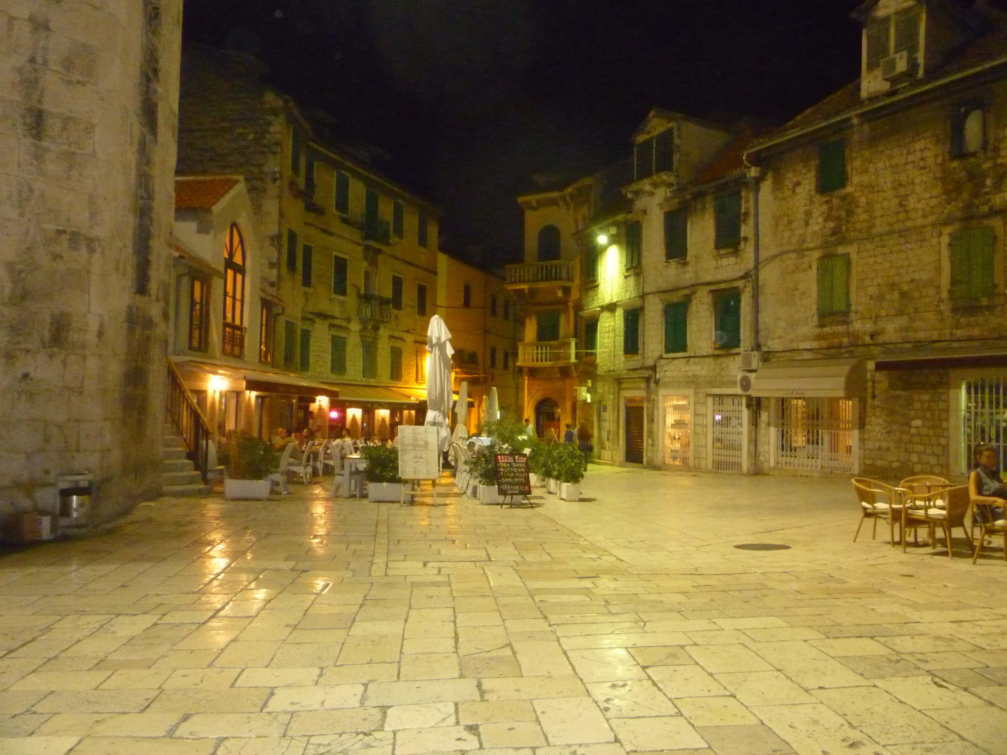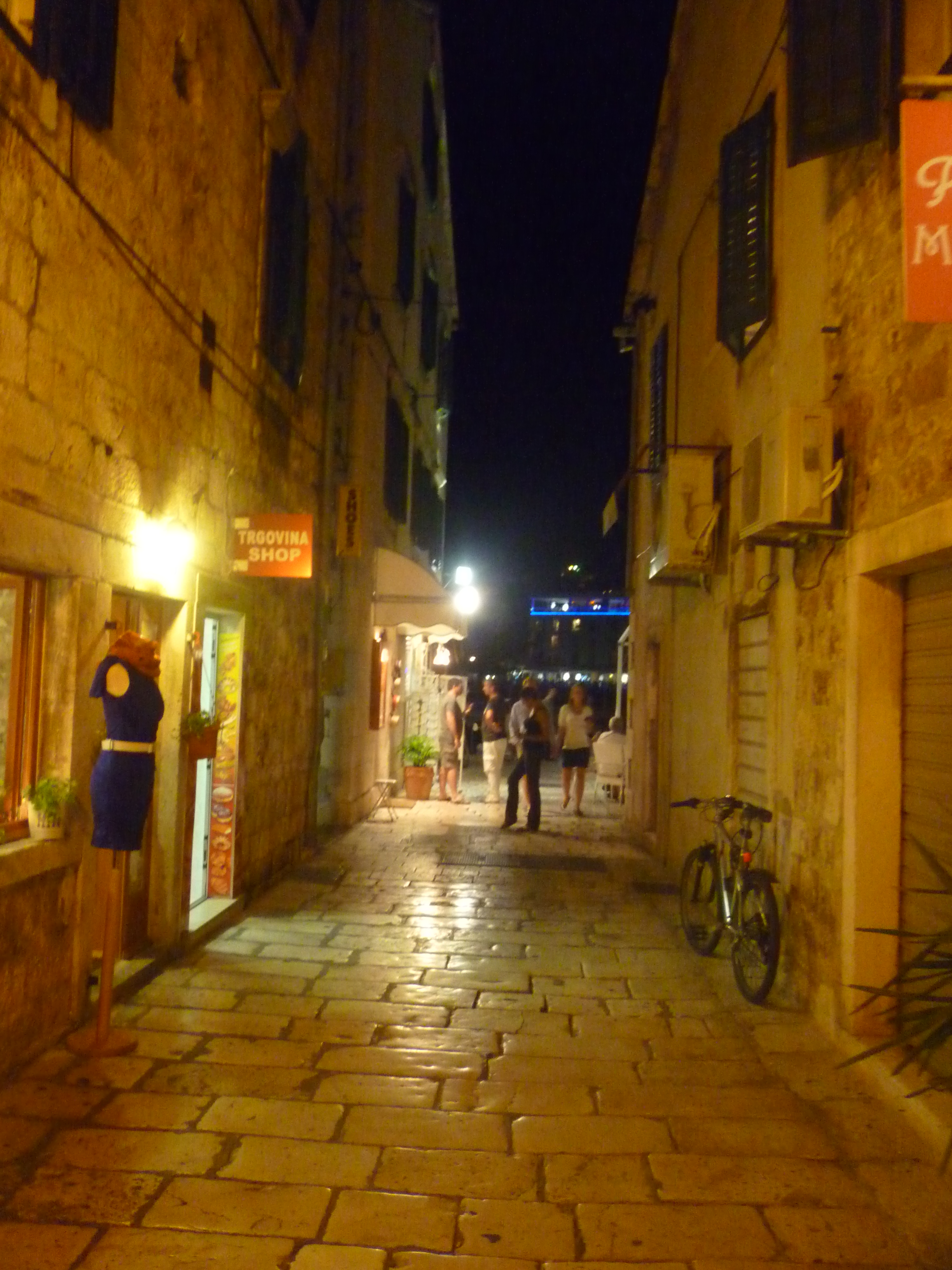 We finally arrived in Split at 8pm, after a fairly boring (but comfortable) bus ride, and were instantly greeted by boisterous touts waving signs in our faces and asking if we needed somewhere to stay. That was the first time I’d ever experienced that particular brand of “let’s-pester-the-sh*t-out-of-the-tourists”, but I politely said “We have one” and pushed through them. We walked along a touristy seafront, my joy at being near the sea slightly dampened by the throngs of loud tourists and brightly lit souvenir stands. I felt a little dirty, so we grabbed our map and made our way to our hostel.