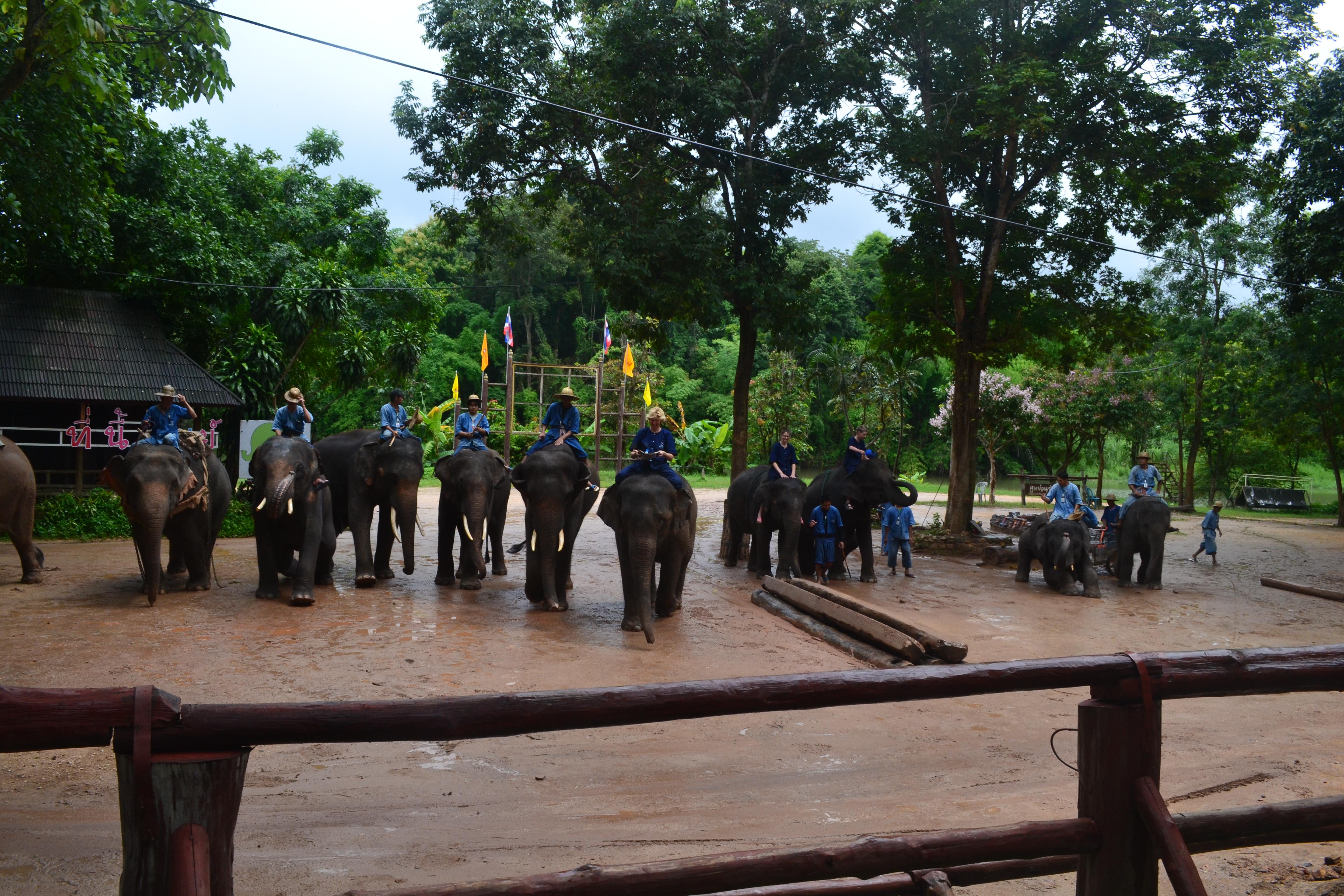 The show is fascinating. They demonstrate a lot of elephants’ “original” jobs, such as pushing logs around, but they also show how intelligent these creatures are. They’ll play dead, bend their knee to allow humans to hop up onto them, throw balls into a basket (which I was meant to catch them in and failed!) and then, at the end… they paint pictures!