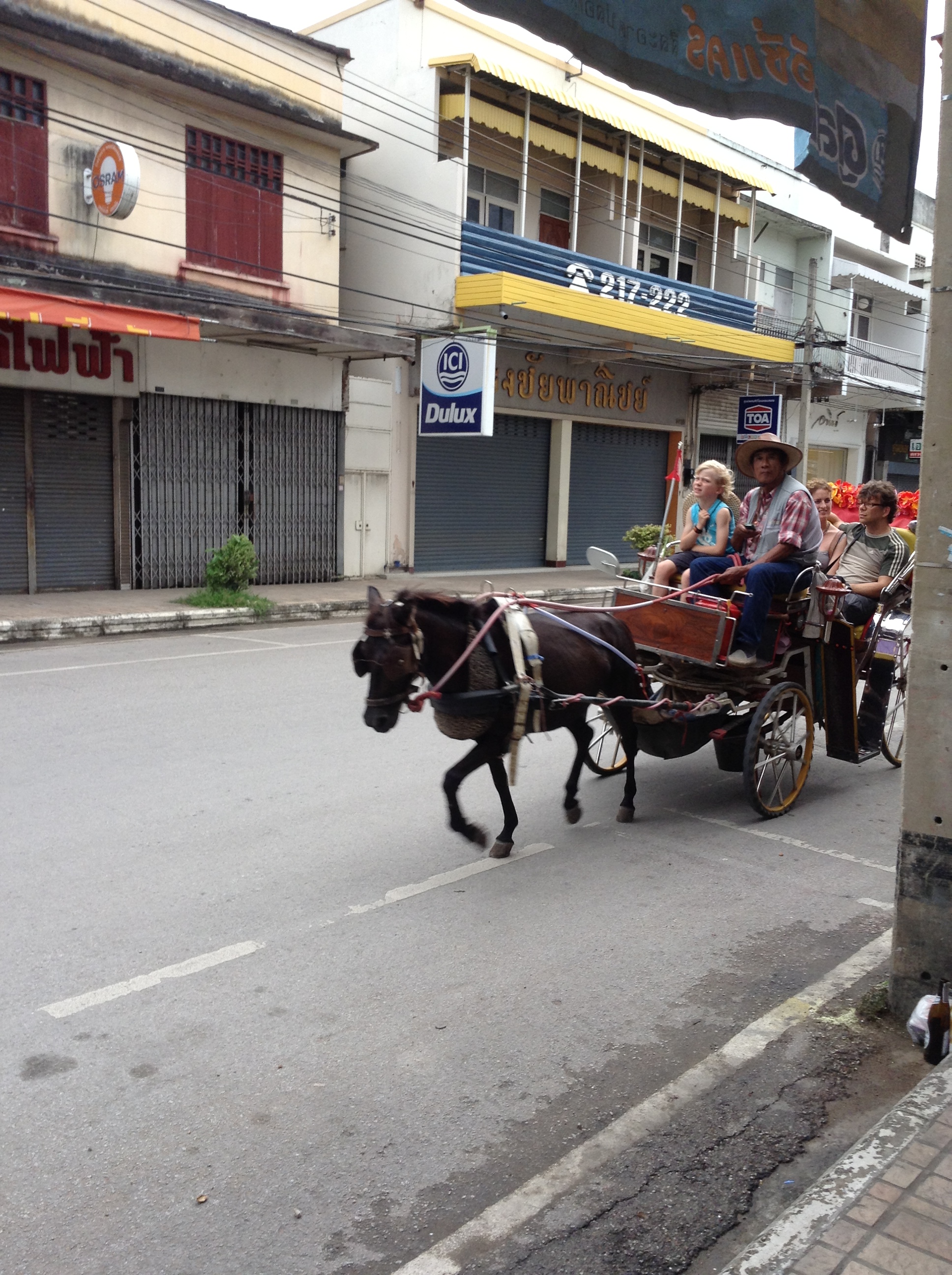 Our hostel gave us a nice little map of Lampang. Basically, it’s a small town with not a lot to do, but it does have a few interesting quirks. It’s probably the only place in Thailand where you’ll see people pulled around by horse and carriage (tourists, and very skinny horses).